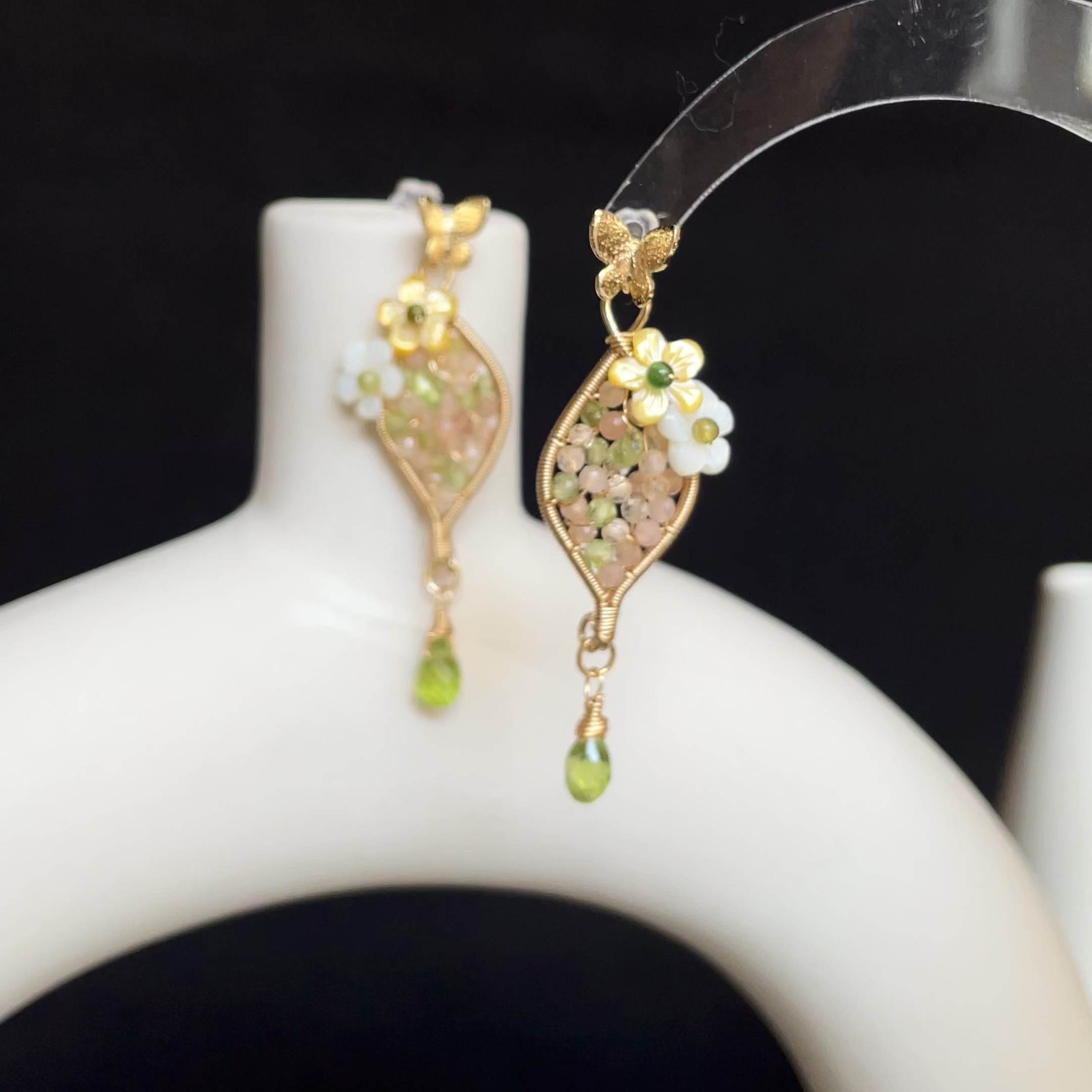 Handmade with care, no two pairs are ever identical—each is a tiny wearable garden.