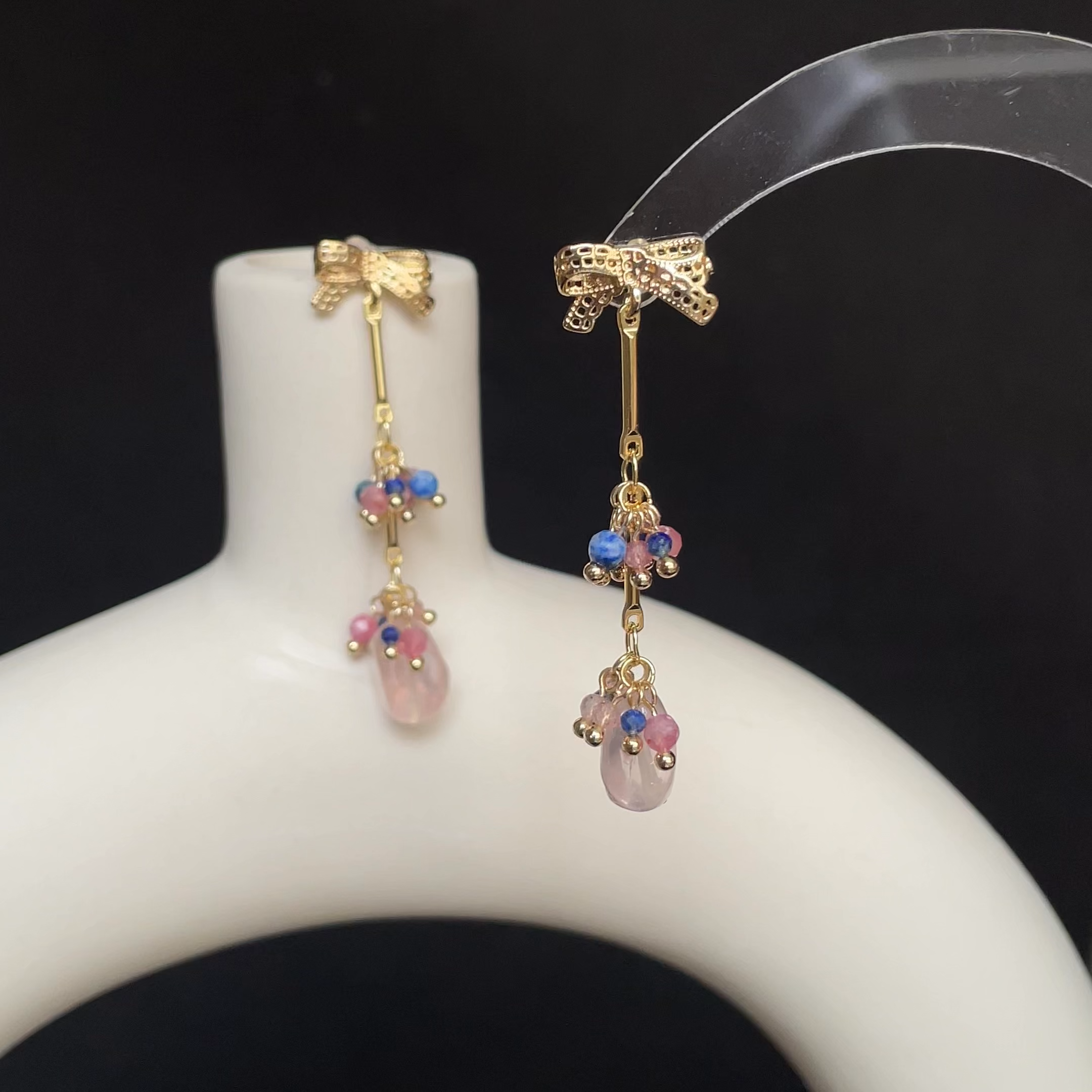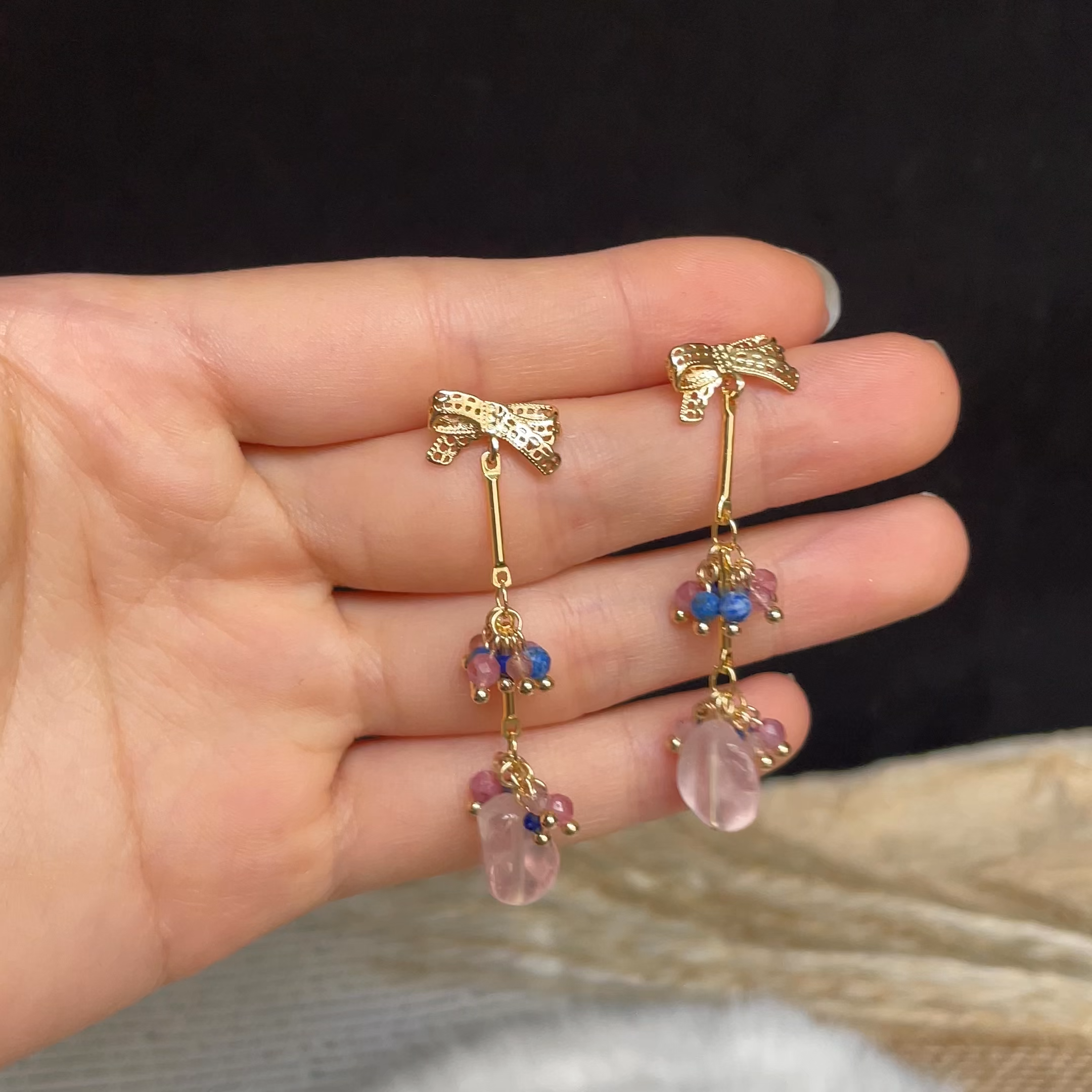 💗 Rose Quartz (bottom irregular drop) – symbol of love and tenderness